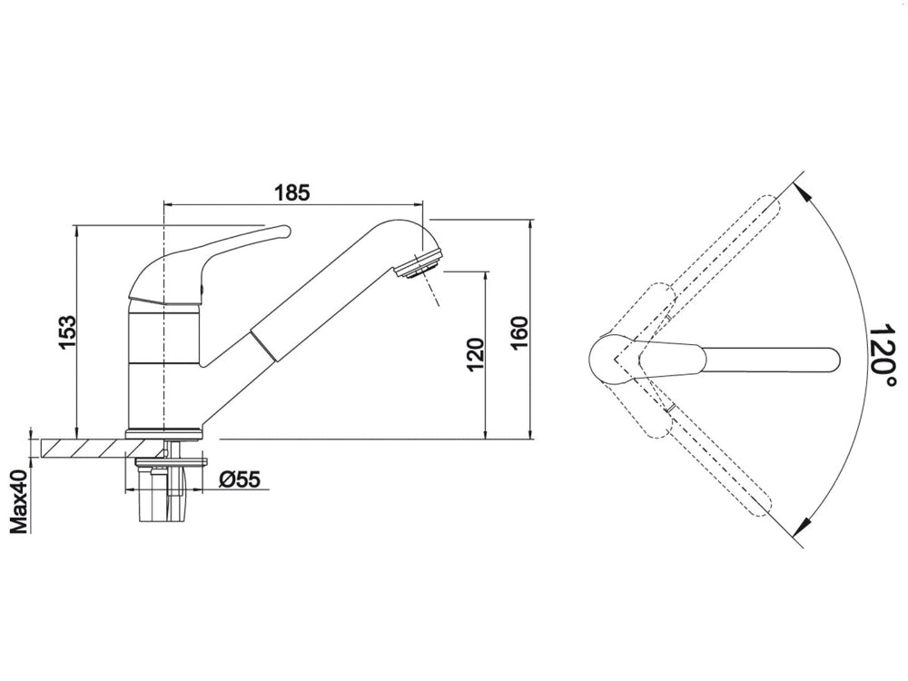- Schwenkbereich: 120°.