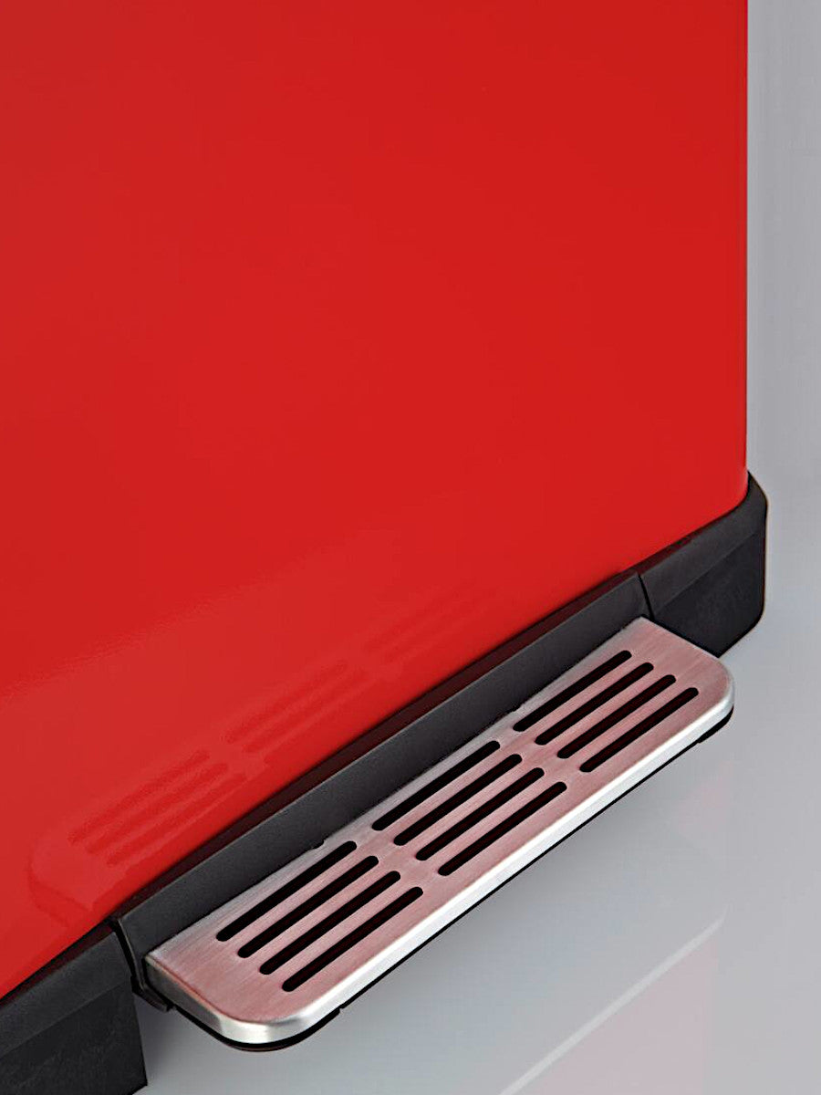Der Treteimer hat zwei getrennte 18 l Einsätze, die Sie ganz nach Belieben mit Wertstoffen, Papier, Plastik oder Bio-Müll füllen können. Der Edelstahldeckel schließt dank eines eingebauten Dämpfers nahezu geräuschlos und verschließt den Abfall sicher. Außerdem kann der Deckel in der offenen Stellung arretiert werden. Eine praktische Befestigungsmöglichkeit für Mülltüten an den Kunststoffeinsätzen verhindert ein Herausrutschen des Beutels, sodass nichts daneben gehen kann. Der großzügige Fußtritt aus Edelstahl garantiert problemlose Bedienung und freie Hände, um Müll bequem zu entsorgen. Der Big Double Boy ist ein tolles Mülltrennsystem in stylischer Optik.