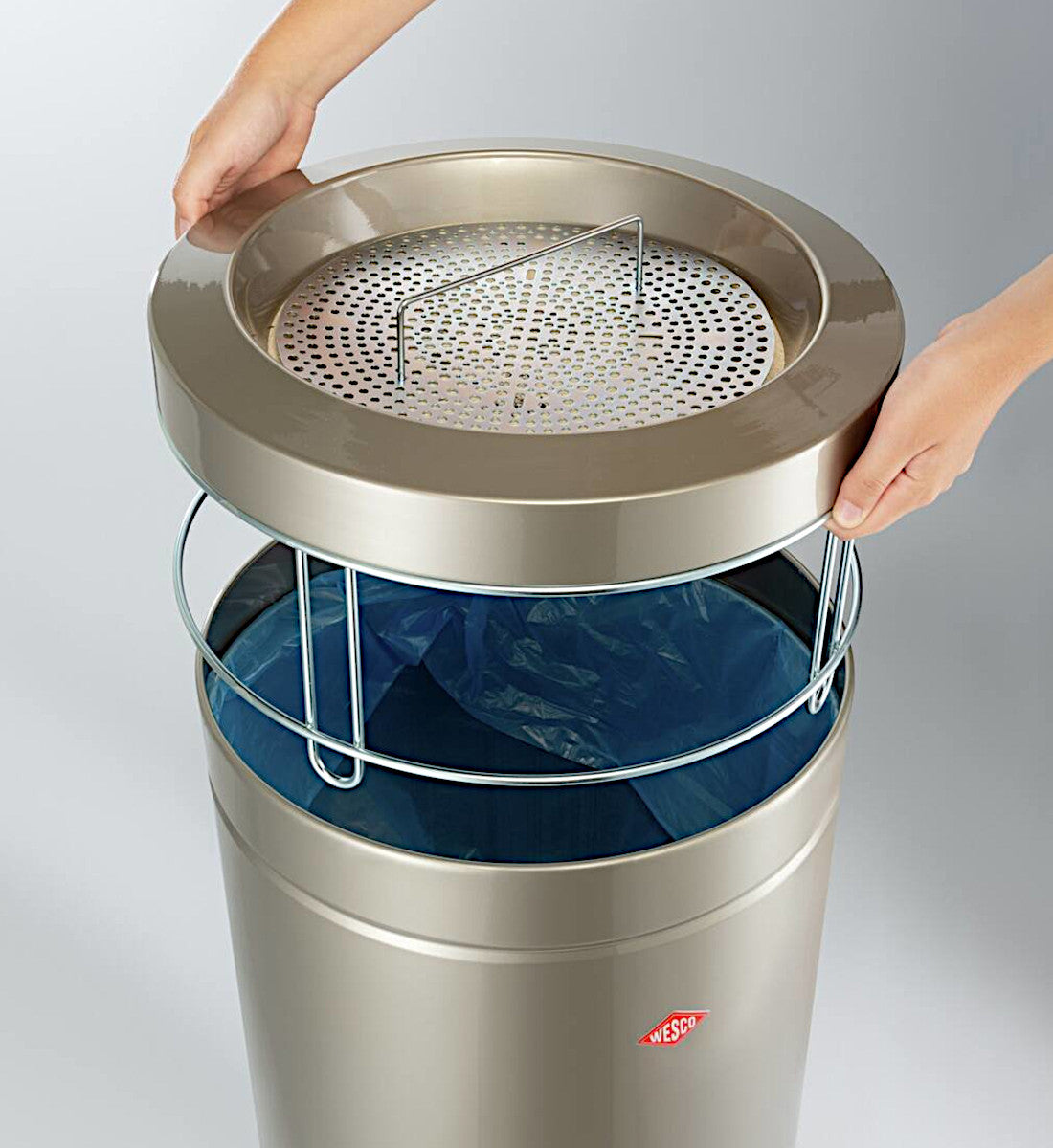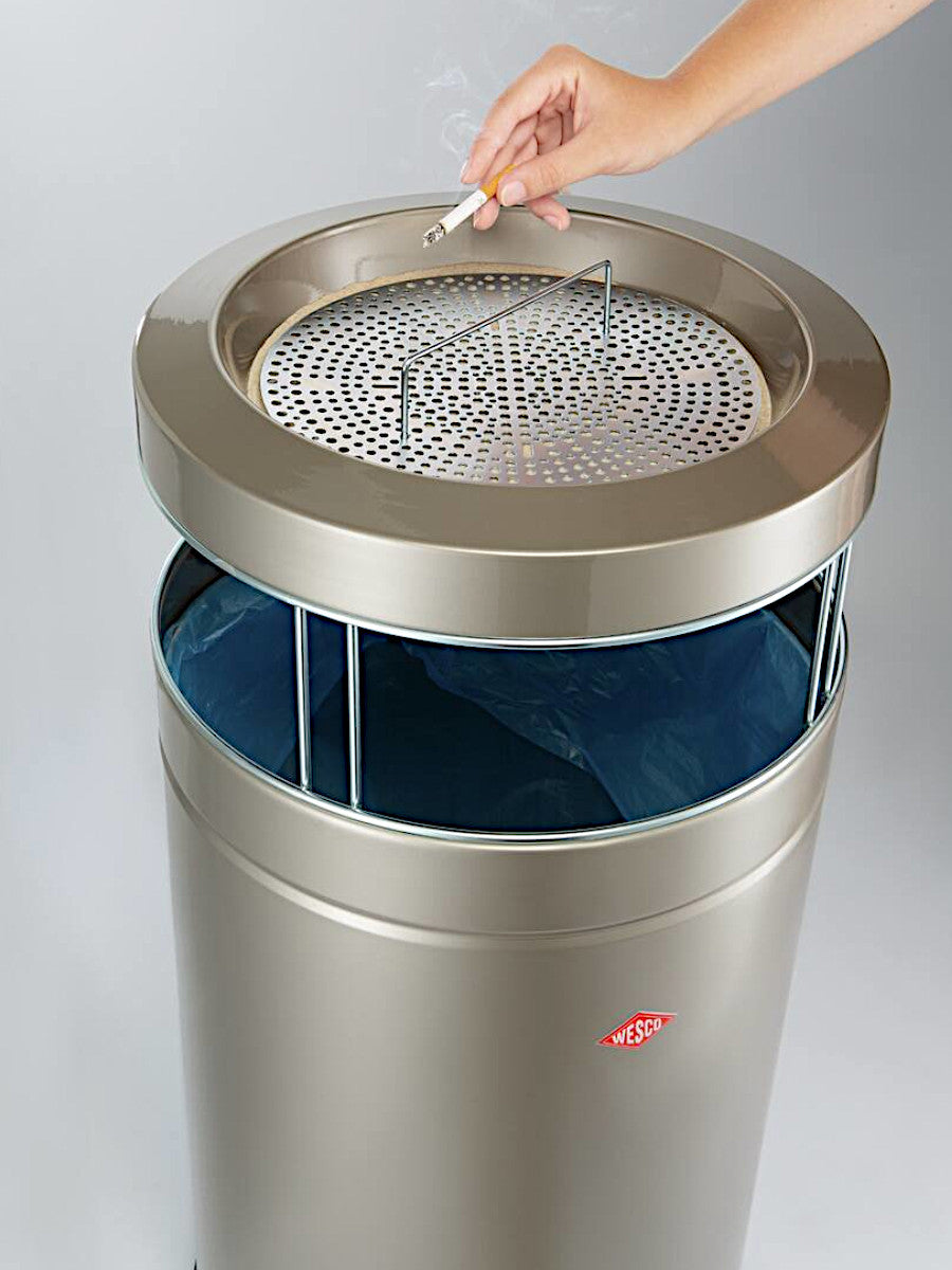 WESCO® BIG ASH - Ein edler Hingucker für Einkaufspassagen, Eingangsbereiche, Flughäfen oder Gastronomie. Mit Ascherschale oben, inkl. Siebeinsatz.