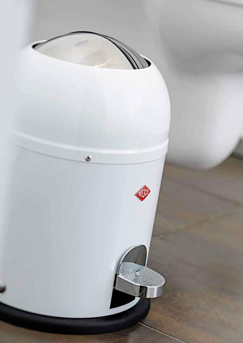 WESCO® MINI MASTER 6 Liter - Ideal für das Bad oder den Biomüll in der Küche. Als Kosmetikeimer für das Bad ist er mit einem Volumen von 6 Litern perfekt geeignet, denn trotz der kleinen Größe überzeugt der Mini Master mit großem Stil! Der praktische Fußtrittmechanismus öffnet bei Bedarf die praktische Einwurfklappe!