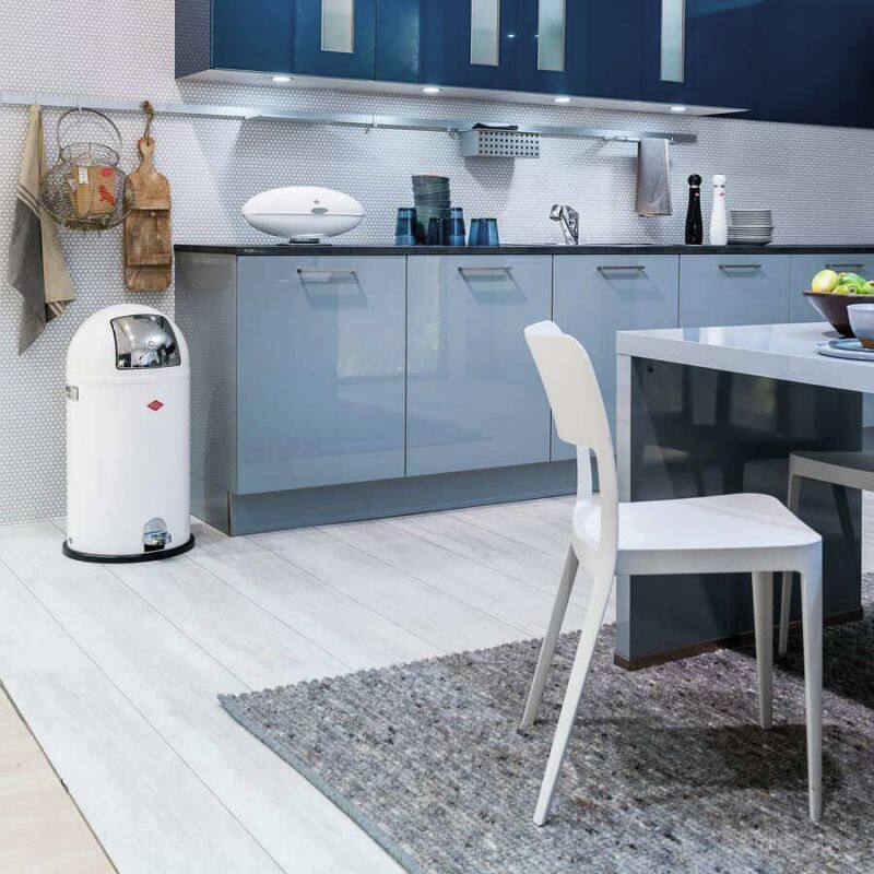 Der Tretabfalleimer Kickboy ist ein praktischer Küchenhelfer im rundlichen Design. Mit seinem klassischen Stil fügt er sich in sämtliche Kücheneinrichtungen ein. Damit persönliche Gestaltungsideen umgesetzt werden können, steht der Mülleimer dazu in verschiedenen Farbvarianten zur Auswahl. Durch sein Abfallvolumen von 40 Litern bietet er jede Menge Platz für den Haushaltsmüll. Über das Fußpedal lässt sich die Klappe ganz leicht und ohne Einsatz der Hände öffnen. Für eine langlebige und robuste Qualität ist der Abfalleimer mit einem Korpus aus hochwertigem Stahlblech und einer Klappe aus Edelstahl hergestellt. Der Einsatz besteht aus stabilem Metall. Dank seiner abgerundeten Form lässt sich der Treteimer einfach reinigen.